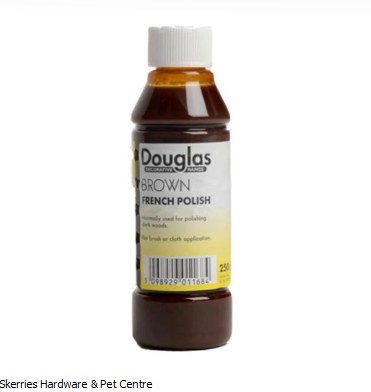 A solution of shellac, dispersed in Methylated Spirits for use on dark grain woods. Brown French Polish dries in 20 minutes and can be reapplied after approximately 6 hours. Ideally it should be appplied in a warm dry atmosphere allowing at least 24 hours for the surface to harden before putting to use.