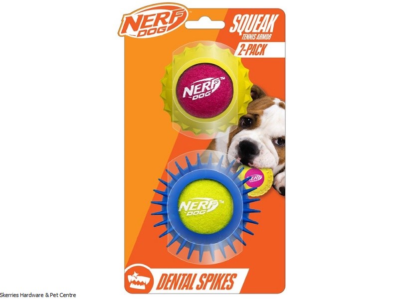 NERF DOG SQUEAK BALL WITH ARMOUR 2PK