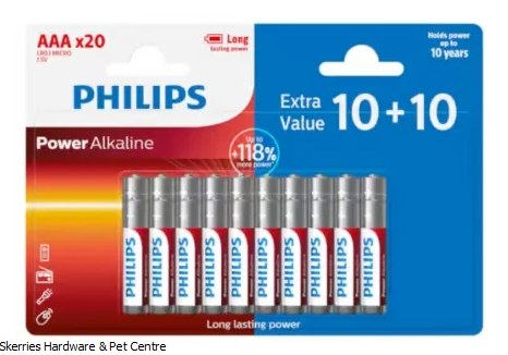 PHILIPS POWER ALKALINE AAA BATTERIES - EXTRA VALUE 20 PACK