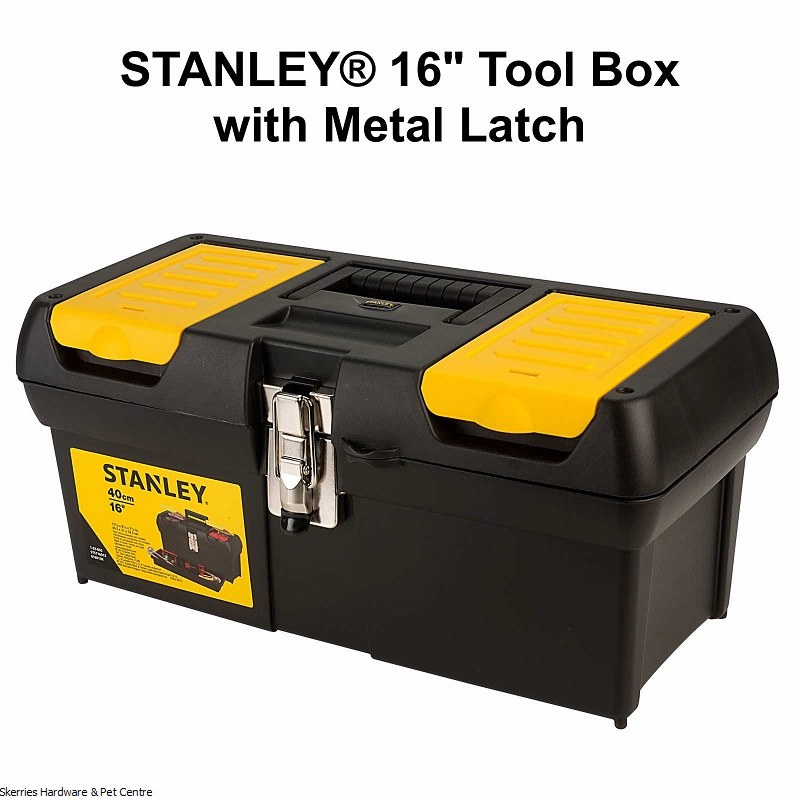 Upgrade your tool storage with the Stanley 16" Tool Box with Metal Latch and experience the difference in quality and convenience. Keep your tools secure, organized, and easily accessible with this essential tool storage solution.