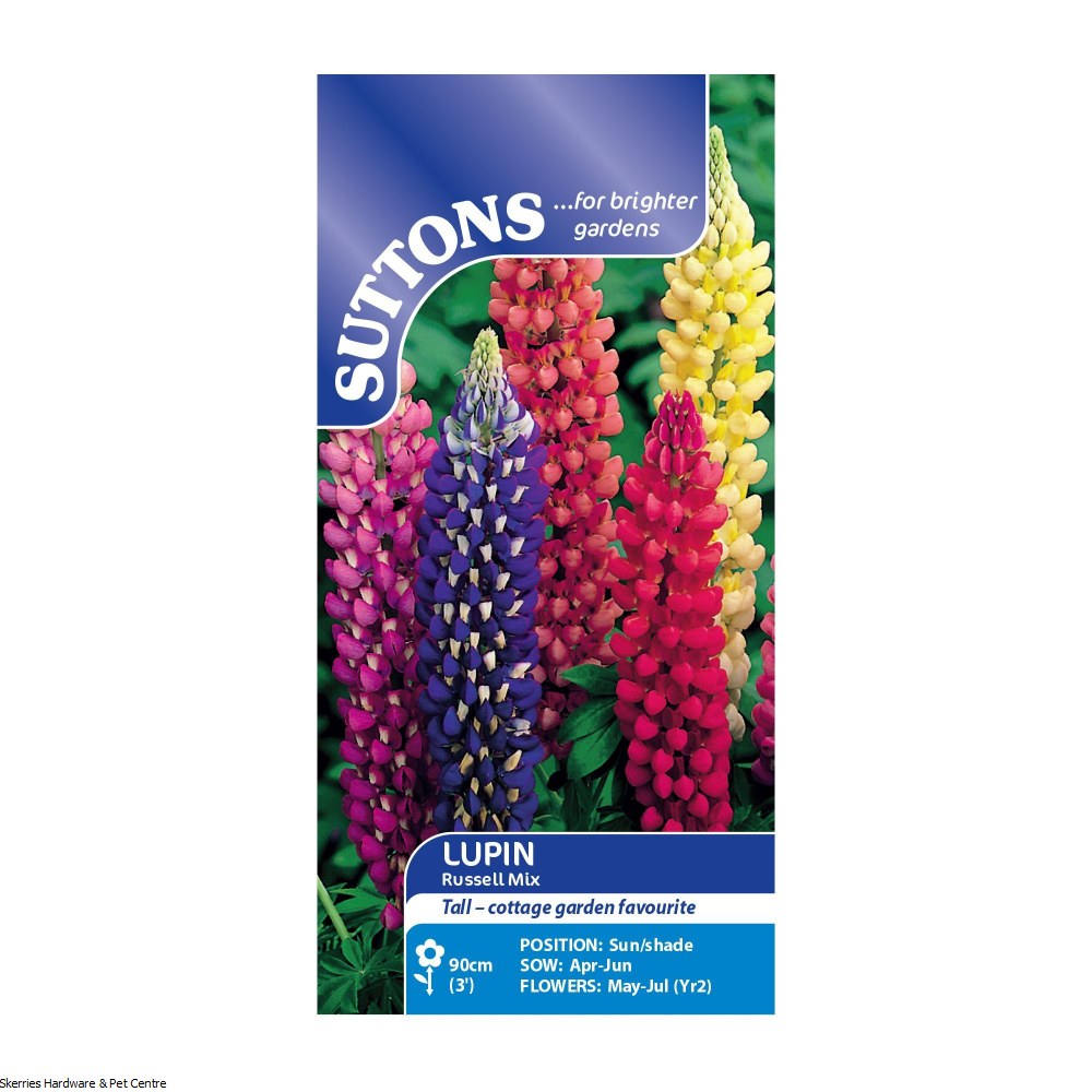 A unique strain of perennial Lupins with exceptionally bold spikes of blooms, showing a wide range of colours which includes many unusual shades of pure yellow, orange and bright crimson, as well as attractive bicolors. An old favourite, Russell Mix has been tried and tested and will always perform, giving plenty of colour on glorious flower spikes. Awarded Gold Medal, R.H.S. 1937. Height 90cm (3'). HP - Hardy perennial. ( Please note: seeds/plants harmful if eaten.)